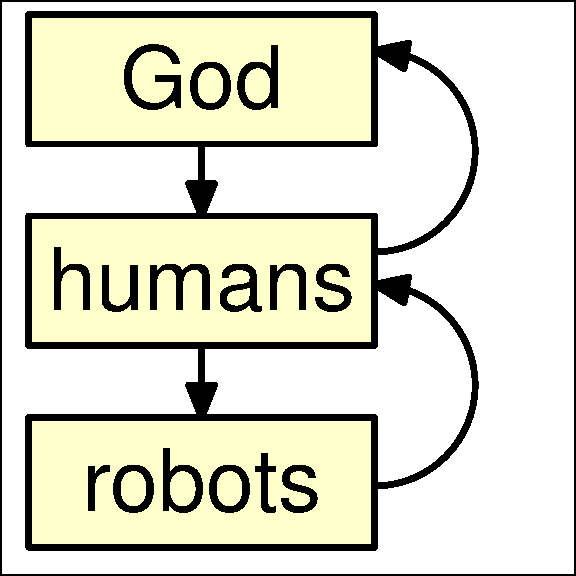 This page is based on Psalms 2 and relates the ideas of self-reference in terms of robots, humans, God and self-referential human fear of robots rebelling and trying to take over with the rebellion of humans against God. Along the way, some linguistic properties and connections of various words are included.